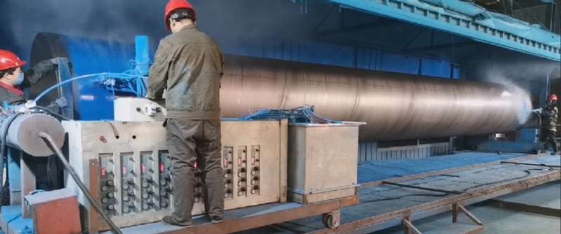 2. 管道預(yù)熱。對已經(jīng)拋丸除銹處理合格的管道進(jìn)行加熱,加熱至工藝要求的溫度范圍(200°-220°),而且必須加熱均勻,內(nèi)外加熱一次成型,避免二次加熱破壞涂覆的涂層。溫度過高或者溫度過低,都會造成涂層附著力不足,影響涂塑鋼管的使用壽命。
