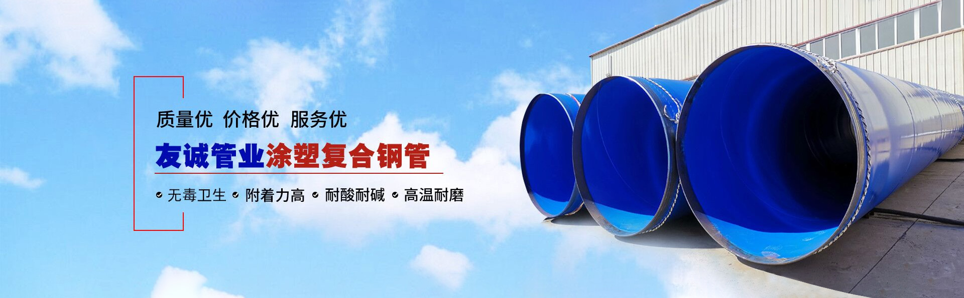 滄州友誠(chéng)管業(yè)有限公司是一家專(zhuān)業(yè)從事生產(chǎn)防腐涂塑管道及管件于一體的大型企業(yè)。公司注冊(cè)資金8600萬(wàn)元,位于中國(guó)管道生產(chǎn)基地—河北鹽山縣,近靠京滬高速、榮烏高速、黃石高速30公里,高鐵滄州西站40公里,天津國(guó)際機(jī)場(chǎng)、濟(jì)南遙墻機(jī)場(chǎng)150公里,為客戶(hù)來(lái)訪(fǎng)及業(yè)務(wù)發(fā)展提供了便利的交通條件。        鋼管系列:螺旋鋼管、無(wú)縫鋼管、ERW直縫焊管、JCOE埋弧焊直縫鋼管、熱鍍鋅鋼管。        涂塑系列:內(nèi)外涂塑鋼管、涂塑復(fù)合鋼…… 了解更多